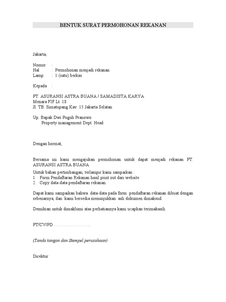 Contoh surat permohonan asuransi. Itulah beberapa contoh surat permohonan untuk berbagai kepentingan yang dapat kamu jadikan rujukan dalam membuat surat permohonan. Contoh surat klaim asuransi kendaraan. 1 response to contoh surat pembatalan polis asuransi anonymous 23 march 2015 at 1011. Contoh kronologis kecelakaan untuk asuransi. Surat permohonan klaim asuransi. Contoh surat pernyataan asuransi prudential.