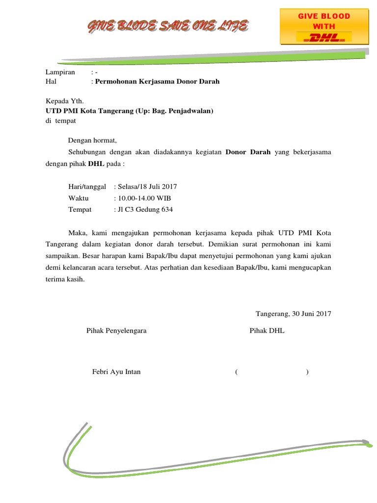 Nah keperluan tersebut perlu bekerjasama dengan palang merah indonesia dalam hal ini bagian unit donor darah yang berkompeten menanganinya. Contoh surat permohonan donor darah there is document contoh surat permohonan donor darah available here for reading and downloading.