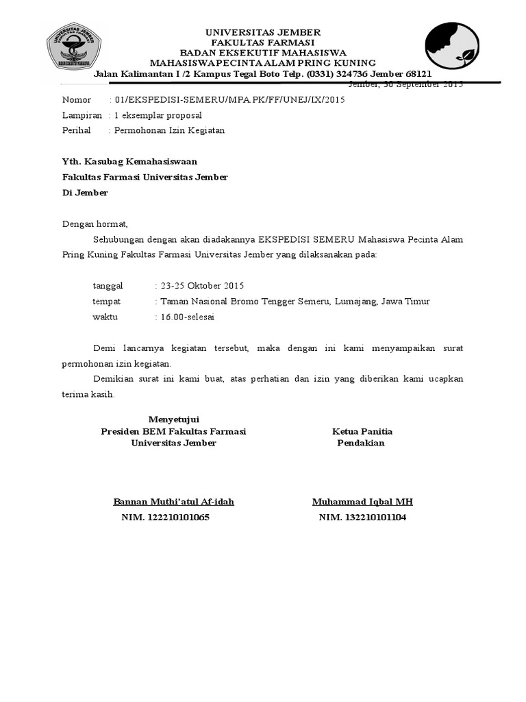 Contoh surat permohonan izin kegiatan. Contoh surat pemberitahuan kepolisian pengadaan acara pada kesempatan ini saya akan memberikan contoh surat kepada polisi pemberitahuan dalam pengadaan sebuah acara dan mudah mudahan dengan contoh surat pengadaan polisi acara pengadaan ini bisa bermanfaat bagi kalian semuacontoh surat pemberitahuan kegiatan ke kepolisian izin keramaian ke polisi segera lihat contoh pemberitahuan izin. Baik itu surat yang dipergunakan oleh perusahaan instansi pemerintahan lembaga organisasi dan perseorangan. Ada banyak aktivitas yang sah dilakukan hanya jika sudah mendapatkan izin dari pihak berwenang. Contoh surat permohonan izin seperti surat surat lainnya yang memiliki beragam jenis di sebabkan oleh tujuan pembuatan dan fungsi surat yang berbeda yang sebelumnya sudah di bahas di blog ini seperti surat permohonan bantuanpada kesempatan kali ini kami akan mencoba menulis surat permohonan izin yang pada intinya tujuan yang di miliki adalah sama yaitu isinya tentang pengajuan permohonan. Download contoh surat permohonan izin kegiatan format doc september 13 2019 july 4 2019 by nurul saputro surat izin adalah salah satu surat yang digunakan untuk permohonan kegiatan ataupun yang lainnya dan juga untuk tidak ikut dalam sebuah acara ataupun kegiatan. Download contoh surat permohonan izin kegiatan format doc september 13 2019 july 4 2019 by nurul saputro surat izin adalah salah satu surat yang digunakan untuk permohonan kegiatan ataupun yang lainnya dan juga untuk tidak ikut dalam sebuah acara ataupun kegiatan.