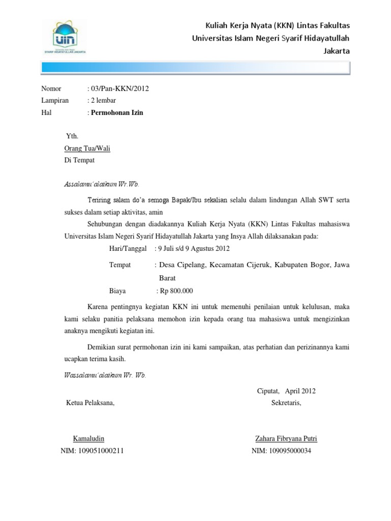 Hal tersebut dikarenakan tuntutan tugas dari orang tua yang harus pindah tugas ke banda aceh. Ada banyak sekali jenis surat izin orang tua baik itu untuk keperluan kerja sekolah kuliah kegiatan organisasi dan masih banyak yang lainnya.