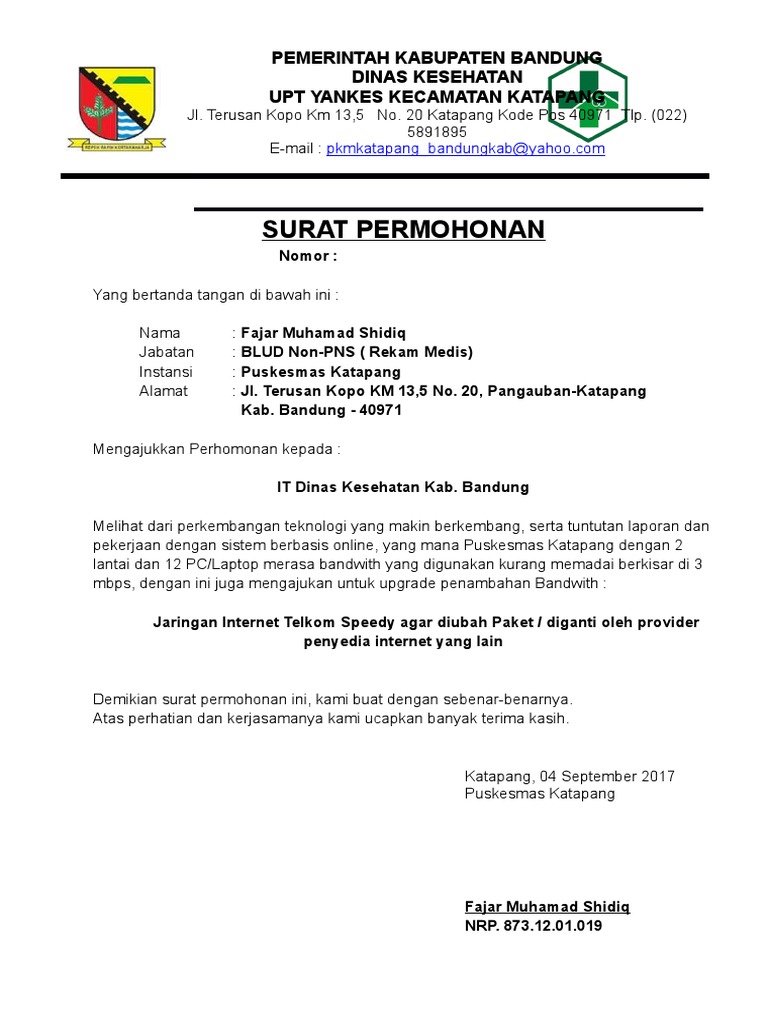 Demikianlah surat permohonan ini kami buat. Contoh surat permohonan dalam kehidupan sehari hari sering kali kita dihadapkan dengan suatu situasi yang tidak dapat dikerjakan dengan sendiri dan harus memerlukan bantuan pertolongan dari orang lainagar permohonan tersebut dikabulkan maka kita harus membuat sebuah surat permohonan yang ditujukan kepada pihak yang bersangkutan. Bersamaan dengan surat ini kami dari smk pembangunan cibadak bermohon kepada bapakibu pimpinan telkom untuk memasang jaringan internet 1 line kembali di smk pembangunan cibadak yang beralamat di jl. Education 10 info 5 blogger news. Untuk kali ini akan disampaikan contoh surat kuasa untuk berhenti berlangganan layanan telkom speedy yang bukan milik sendiri. Permohonan peruntukan untuk membiayai pemasangan wireless si sk dan 2 unit komputer.