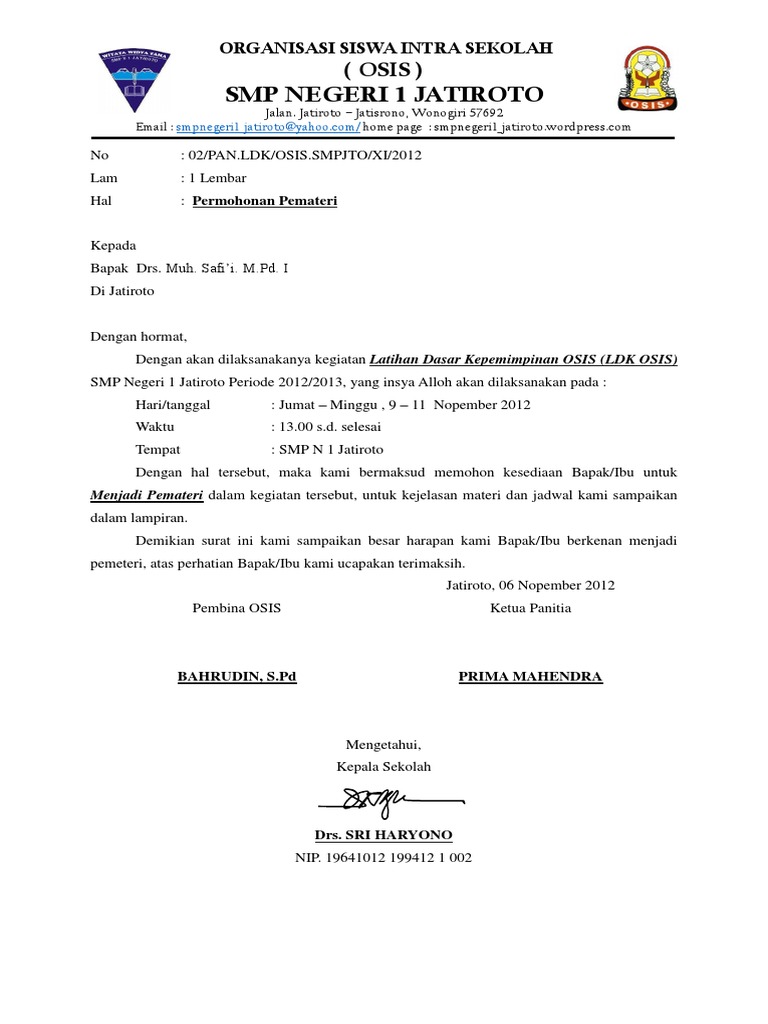 Contoh surat permohonan pemateri. Permohonan menjadi pemateri 1 program kepala sekolah 1 sk benar benar siswa 1. Dan contoh pertama adalah surat permohonan menjadi pemateri dalam sebuah acara. Demikian surat permohonan kami atas perhatian dan terkabulnya permohonan ini kami sampaikan terimakasih. Surat ini dibuat oleh panitia acara kegiatan even organizer pesantren kilat pada bulan ramadhan dan isinya adalah permohonan yang ditujukan kepada seorang ustadz supaya beliau berkenan menjadi pemateri pengisi materi pada program yang telah dibuat. Agar lebih jelasnya berikut ini terdapat contoh surat undangan untuk menjadi pembicara dalam acara motivasi. Kegiatan organisasi kampus eksternal kampus maupun instansi pemerintahan formal dan non formal untuk membaca artikel selengkapnya dengan klik link di atas.