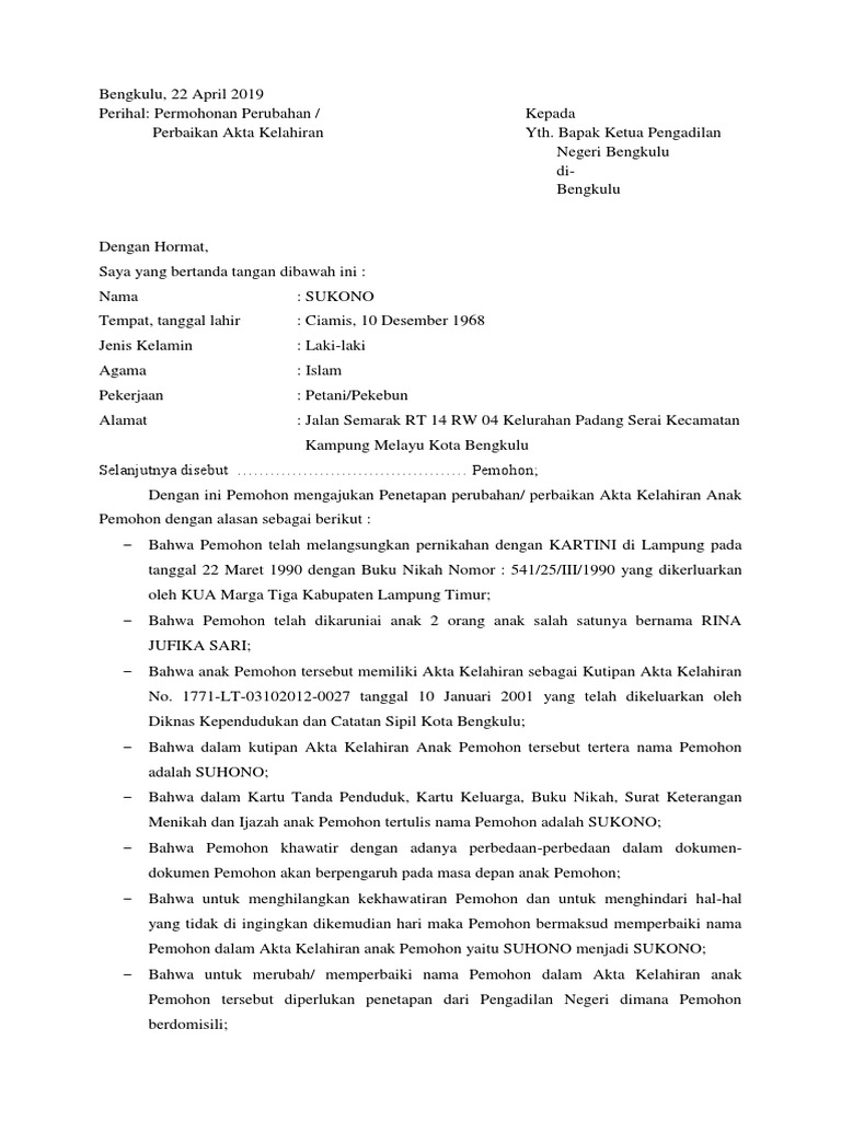 Perbaikan nama dalam akta berikut ini anda bisa lansung copypaste surat permohonan perbaikan nama dalam akte akta kelahiran ini untuk kelengkapan. Sistem informasi penelusuran perkara. The collection that comprising chosen picture and the best amongst others. Contoh surat kuasa untuk akta kelahiran have a graphic associated with the othercontoh surat kuasa untuk akta kelahiran it also will include a picture of a kind that may be seen in the gallery of contoh surat kuasa untuk akta kelahiran. Permohonan ganti nama akte berikut ini anda bisa lansung copypaste contoh surat permohonan ganti nama perubahan akte kelahiran ini untuk kelengkapan. Contoh surat permohonan perubahanperbaikan nama akta lahir.