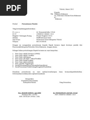 Admin blog kumpulan surat penting 2019 juga mengumpulkan gambar gambar lainnya terkait contoh surat permohonan pindah tugas pns antar propinsi dibawah ini. Pdf contoh surat permohonan pindah tugas pns dally cavendish contoh surat permohnan pindah kerja. Yogyakarta 23 april 2015perihal. Perpindahan sekolah antar kabupaten ataupun provinsi tentu tidak semudah perpindahan sebatas antara kecamatan. Contoh surat permohonan pindah tugas jika anda bekerja pada suatu instansi pemerintahan ataupun perusahaan swasta maka anda pun harus menaati semua peraturan yang ada tidak terkecuali dengan penempatan kerja. 73 ttg jabatan fungsional umum di kementerian kesehatan ebook download as pdf file pdf text file txt or read book online.