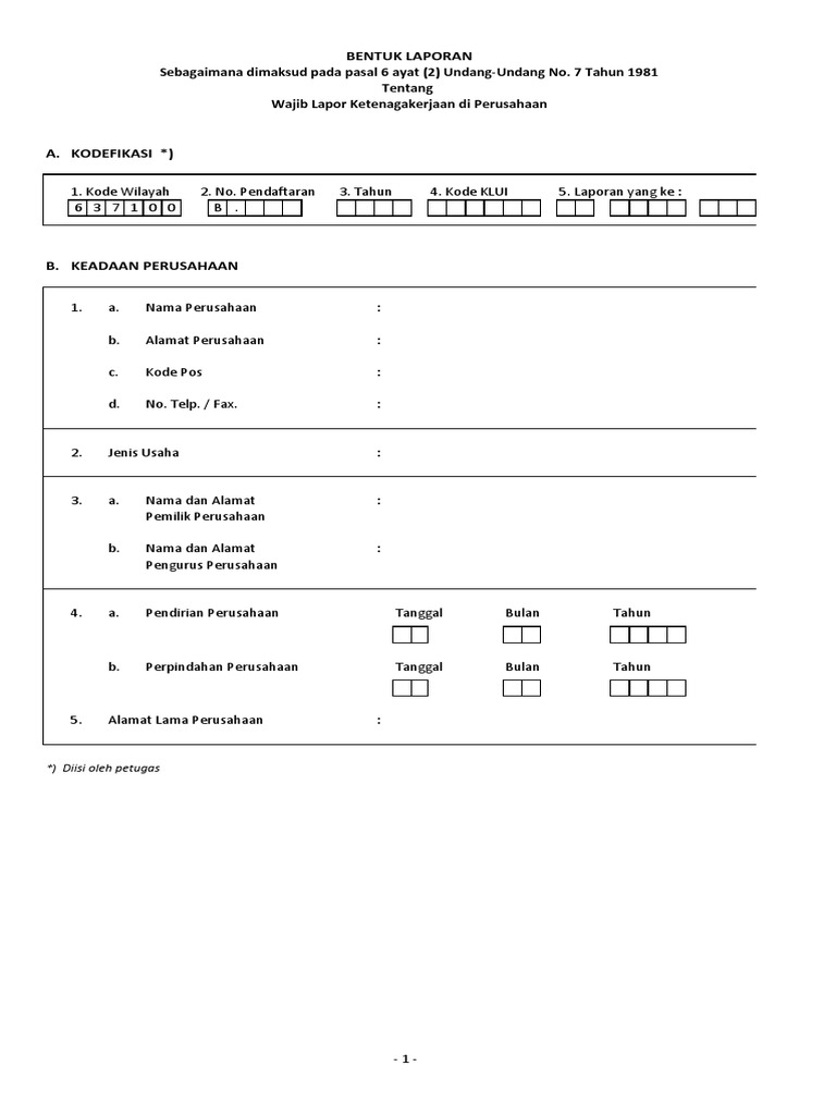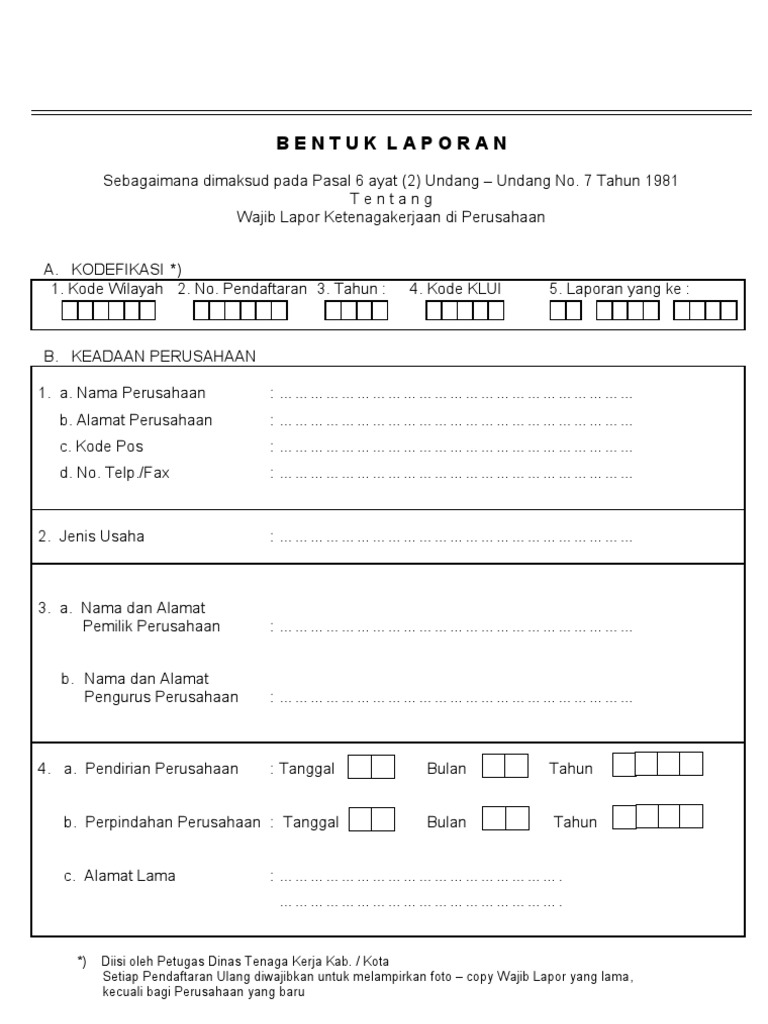 Foto copy wajib lapor lama untuk perpanjangan title. Seseorang yang tidak mengantongi surat paklaring akan kehilangan uang iuran yang dipotongkan dari gajinya untuk bpjs ketenagakerjaan. 0811363930 korwil iii madiun hp. Contoh surat permohonan wajib lapor ketenagakerjaan untuk beberapa usaha sebagai referensi membuat surat permohonan wajib lapor yang resmi. Formulir wajib lapor ketenagakerjaanfasilitas masing masing 3 rangkap 3. Ketentuan wajib lapor ketenagakerjaan undang undang nomor 7 tahun 1981 tentang wajib lapor ketenagakerjaan di perusahaan uu no7 tahun 1981 mewajibkan setiap pengusaha atau pengurus untuk melaporkan secara tertulis setiap mendirikan menghentikan menjalankan kembali memindahkan atau membubarkan perusahaan kepada menteri atau pejabat yang berwenang.