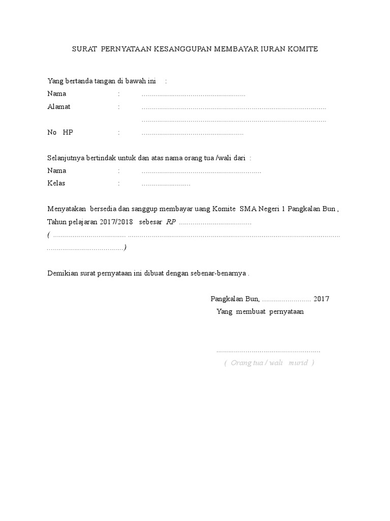 Surat Contoh Surat Pernyataan Kesanggupan