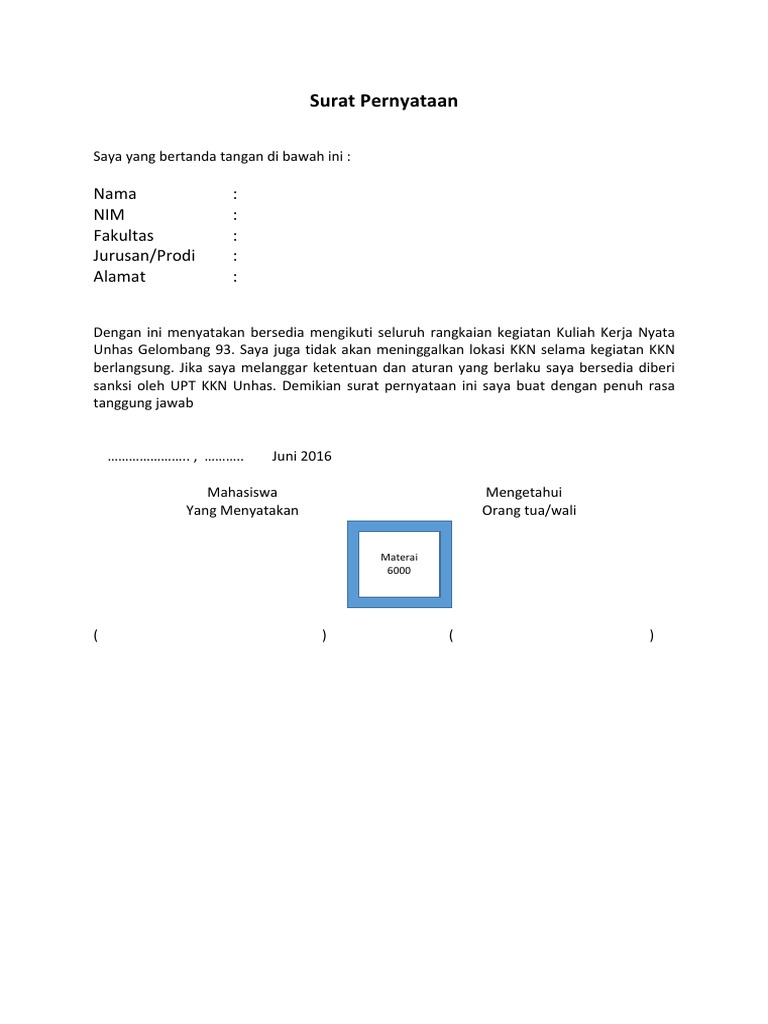 Adapun isi dari surat memuat profil singkat pejabat terkait biasanya dekan fakultaskepala jurusan dan profil mahasiswa yang bersangkutan nama lengkap dan nomor induk beserta keterangan penunjang yang menerangkan bahwa mahasiswa tersebut masih berstatus aktif sebagai mahasiswa di perguruan tinggi tersebut. Banyak sekali persyaratan persyaratan yang harus dipenuhi ketika kita mendaftar cpns. Meskipun hal yang dicantumkan dalam surat pernyataan bisa saja sederhana tapi banyak orang yang masih tidak tahu bagaimana cara membuat dan membutuhkan contoh surat pernyataan yang benar. Surat penyataan bermanfaat sebagai alat penguat atau. Contoh surat pernyataan kesanggupan cpns. Orang tua calon mahasiswa anton sanjaya.