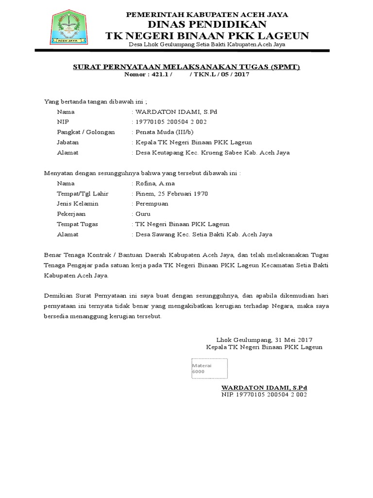 Contoh surat tugas surat perintah tugas terima kasih kepada para pembaca yang telah mengunjungi situs kami. Sdn murung keramat 2. Nah oleh karena itu jika anda sedang membutuhkan referensi dalam membuat surat pernyataan melaksanakan tugas spmt ini di bawah ini telah saya siapkan contohnya untuk anda. 15 contoh surat tugas resmi yang baik dan paling lengkap salah satu jenis surat yang sangat sering digunakan oleh perusahaan maupun instansi tertentu adalah surat tugas. Contoh surat pernyataan melaksanakan tugas spmt pppk p3k 2019 merupakan salah satu berkas persyaratan mendaftar pppk p3k tahun 2019 ini. Biasanya surat ini akan dilengkapi dengan surat pernyataan pembuat skmt sebagai penjamin kebenaran dari isi skmt.