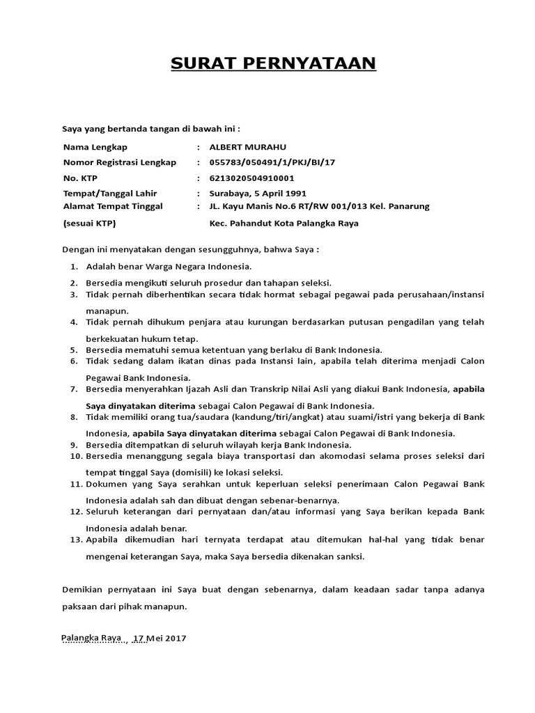 Namun untuk urusan komunikasi perusahaan maupun berbagai lembaga maupun instansi pemerintah penggunaan surat masih merupakan sesuatu hal yang wajib untuk dilakoni. Contoh surat lamaran cpns 2019 resmi untuk guru bumn dan pemda. Bentuk contoh surat pernyataan ada berbagai macam mulai dari surat pernyataan umum surat pernyataan kesanggupan kerja surat pernyataan kerja surat pernyataan hutang surat pernyataan jual beli tanah dan masih banyak lagisurat ini biasanya merupakan bentuk surat pernyataan pertanggungjawaban atas apa yang diminta atau yang menyatakan kondisi anda sekarang dengan sebenar benarnya. 126533 a a3 kp 2019 tentang seleksi penerimaan cpns kemendikbud tahun 2019. Inilah pembahasan lengkap terkait surat pernyataan tidak pernah diberhentikan secara tidak hormat.