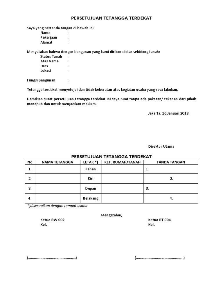 Contoh surat persetujuan tetangga. Hal ini dilakukan untuk semata mata sebagai syarat yang harus dipenuhi baik itu dilakukan oleh pihak instansi ataupun perorangan. Contoh surat permohonan blokir sertifikat ke bpn. Cari di dalam dokumen. Kumpulan contoh surat surat ijin tetangga merupakan sebuah surat yang digunakan untuk meminta ijin kepada para tetangga untuk melakukan kegiatan baik itu kegiatan pembangunan usaha atau membangun sebuah perumahan. Download contoh surat ijin tetangga untuk mendirikan perusahaan langsung download saja yah bagusnya lewat komputer jangan lewat hp file ini tidak di protek tidak usah mengirim permintaan ijin download. Fb twitter wa line pinterest g linkedin.