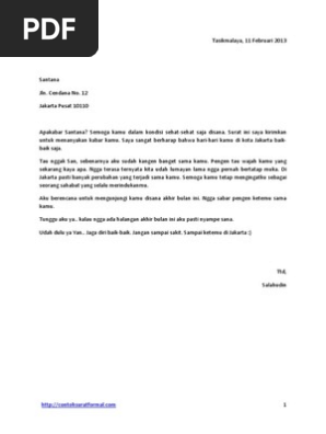 Contoh surat pribadi pendek untuk sahabat. Bahkan untuk zaman sekarang berbagi cerita kabar dan informasi pun bisa dilakukan melalui telepon genggam. Jakarta 15 mei 2018. Terpaksa yang dimaksud karena mengikuti sebuah acara dan salah. Sangat jarang berkirim surat kepada teman atau sahabat. Hai vin syukur alhamdulillah aku dalam keadaan sehat tanpa halangan suatu apapun. Karena aku di sini juga sehat dan baik baik saja wi.