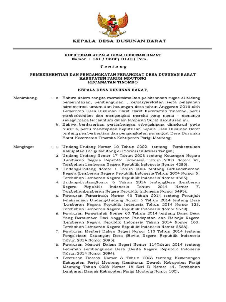 Contoh Sk Pengangkatan Staf Desa Guru Ilmu Sosial