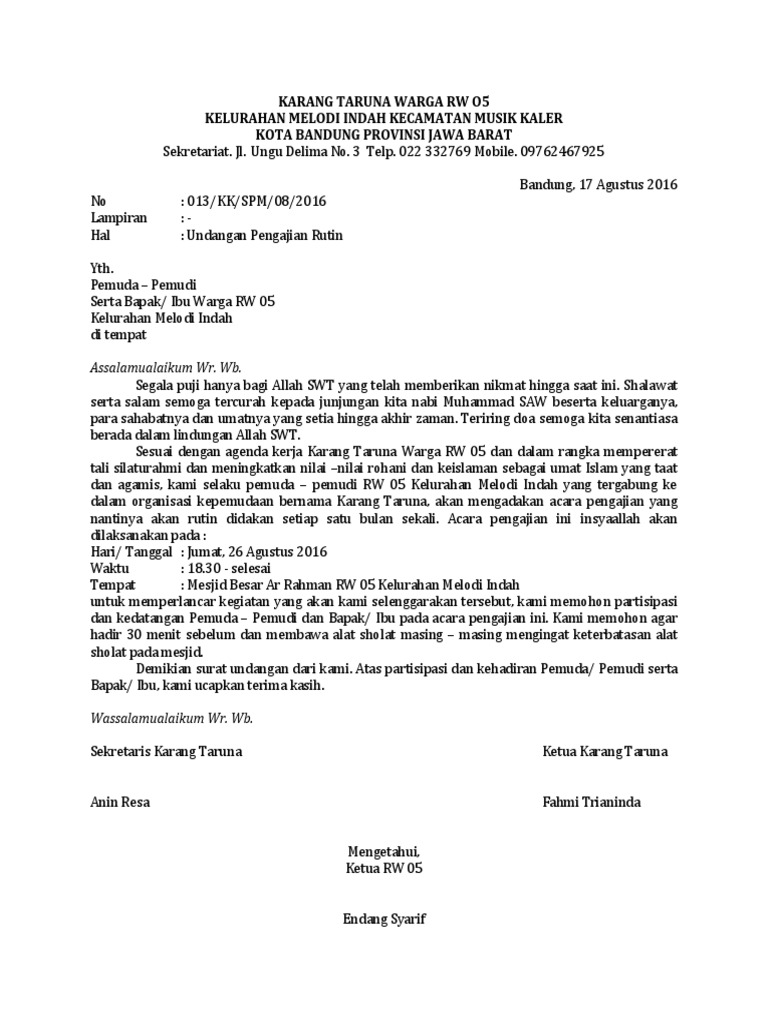 Surat undangan dengan tujuan rapat karang taruna merupakan salah satu surat resmi karena pada surat undangan rapat terdapat ada kepala surat dan berstempel organisasi. Informasi undangan yang kami bagikan semoga menjadi informasi terbaik dan bisa benrmanfaat untuk semua khususnya informasi tentang contoh surat resmi bahasa cirebon terbaru 2020 yang semuanya kami kumpulkan dengan serapih mungkin. The collection that consisting of chosen. Contoh kop surat undangan karang taruna undanganme untuk mendapatkan informasi tentang contoh kop surat undangan karang taruna langsung saja klik link ini disini apabila artikel tidak relevan silahkan cari artikel yg relevan pada web ini. Penulisan surat resmi dalam bahasa sunda sendiri umumnya adalah seperti diatas nah berikut langsung saja beberapa contoh surat resmi bahasa sunda tentang karang taruna dalam persiapan 17 agustus khusunya buat para pemudi pemudi yang ingin melakukan suatu program seperti misalnya acara agustusan di desa atau wilayahnya. 18 contoh contoh surat undangan rap.