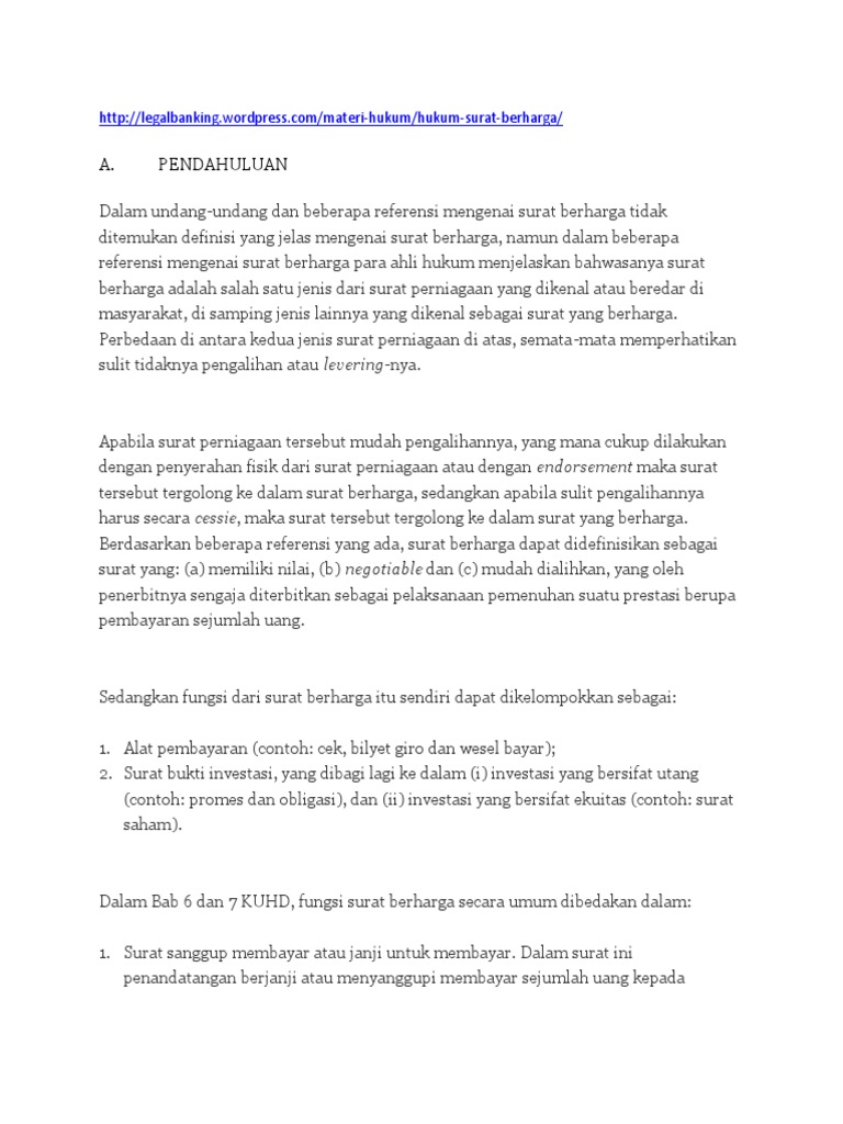 Dalam hukum surat berharga asas praesumtif order papier karena dalam surat wesel hanya klausa maka kalau tidak ada kata pengganti maka tidak memenuhi syarat klausula atau berklausula pengganti. Surat berharga pada umumnya dipakai sebagai alat pembayaran dalam setiap transaksi khususnya di kalangan para pengusaha. Contoh surat kuasa kredit dan jaminan contoh surat kuasa jual agunan jaminan yang baik dan benar 2018. Berikut ini adalah ciri ciri dan syarat surat berharga tersebut. Terdapat beberapa tanda tangan dari pihak terkait. Treasury bills t bills t bills merupakan instrument utang yang diterbitkan oleh pemerintah atau bank sentral atas unjuk dengan jumlah tertentu yang akan dibayarkan kepada pemegang pada tanggal yang telah ditetapkan.