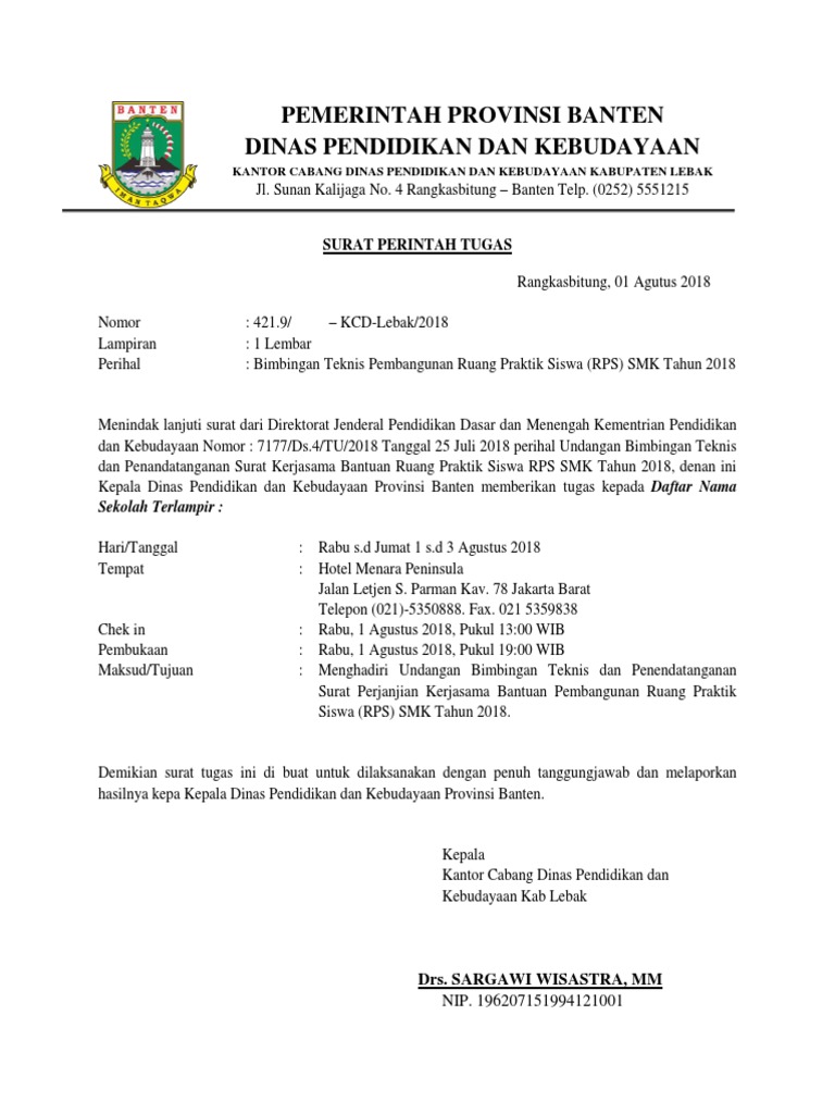 Contoh surat tugas dinas pendidikan dinas pendidikan adalah dinas yang membawahi sekolah sekolah dan lembaga pendidikan lainnya di sebuah tempat. Jadi meskipun proses transfer informasi sudah sangat mudah dengan adanya kemajuan teknologi. Surat ini sangat penting dan diperlukan sebagai keterangan ketika pegawai melakukan perjalanan dinas atau keprluan perusahaan. Contoh surat tugas dinas. Nah kepala sekolah selaku pimpinan dari sebuah sekolah seringkali memerintahkan guru atau bawahannya untuk menjalankan tugas tertentu. Berikut kami berikan beberapa contoh surat tugas yang dapat anda gunakan sebagai referensi.