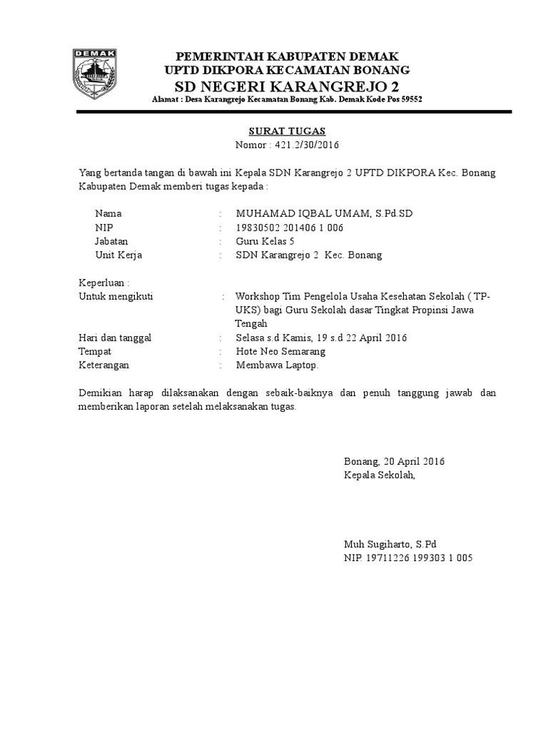Contoh surat tugas guru mengikuti pelatihan kegiatan ini membahas tentang. Surat dan sejarah perkembangannya berdasarkan catatan sejarah kegiatan surat menyurat di indonesia telah dimulai jauh sebelum kedatangan bangsa eropa. Contoh surat tugas kolektif contoh surat tugas koperasi contoh surat tugas mahasiswa contoh surat tugas mengikuti pelatihan doc contoh surat tugas operator sekolah. 15 contoh surat rekomendasi yang baik dan paling lengkap jika diartikan secara sederhana maka surat rekomendasi bisa diartikan sebagai surat yang dibuat oleh seorang pimpinan atau pejabat tertentu yang berisi keterangan tentang seseorang berdasarkan fakta fakta yang ada. Kali ini yang akan menjadi topik pembahasan kita adalah mengenai contoh surat tugas lengkap terbarulalu apa itu surat tugas dan bagaimana bentuk dari surat tugas itu sendiri. Download contoh surat tugas guru doc itu tadi penjelasan singkat beserta 1 contoh surat tugas guru yang dapat kami berikan pada artikel kali iniitu tadi penjelasan singkat beserta 1 contoh surat tugas guru yang dapat kami berikan pada artikel kali ini.