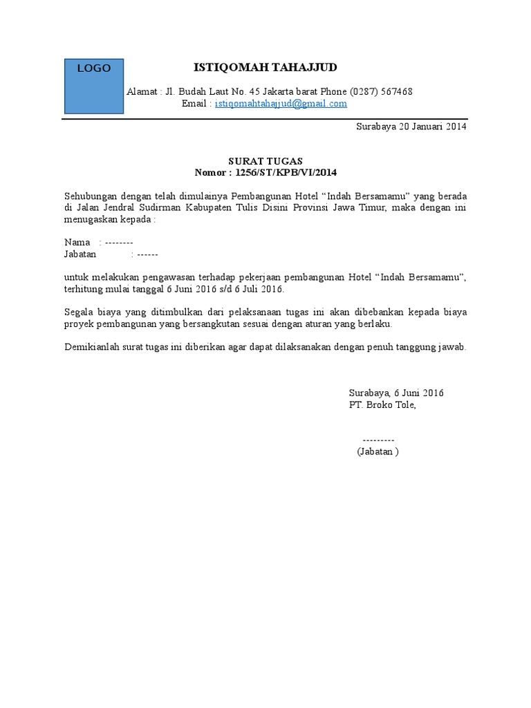 Penulisan lamaran kerja tidak boleh terlalu panjang hingga lebih dari satu halaman. Salah satunya adalah surat tugas perusahaan surat tugas resmi surat tugas karyawan dan masih banyak yang lainnyasedangkan berbicara untuk tujuan dari pembuatan surat tugas ini adalah untuk menyampaikan sebuah. Untuk mengetahui lebih lengkap berikut adalah 20 ragam contoh surat tugas. Nah kali ini kami akan mencoba memberikan anda beberapa contoh surat tugas yang baik dan benar dimana sudah digunakan secara umum sampai saat ini. Berbicara tentang contoh surat tugas yang baik dan benar itu sebenarnya tidak sesulit seperti yang anda bayangkankarena pada umumnya surat tugas itu terbagi atas beberapa bagian. 5 contoh surat tugas yang baik dan benar lengkap dengan cara membuatnya juragan january 1 2018 contoh surat no comments contoh surat tugas dan cara membuatnya hallo sahabat juraganesia yang dibanggakan seluruh penjuru nusantara terimakasih sebelumnya telah menyempatkan diri untuk mengunjungi laman artikel berikut ini.