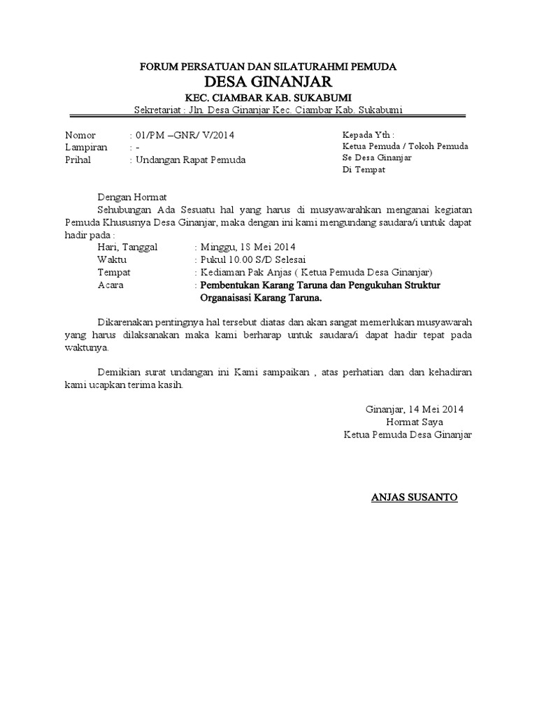 Jika dibedakan berdasarkan penggunaan ataupun jenis jenisnya lagi maka surat resmi dan surat tidak resmi juga masih memiliki jenis yang sangat banyak salah satunya adalah surat undangan. Desa sokawera kecamatan purwokerto perihal. Surat undangan rencana acara silaturahmi warga rt02 rw09 undangan di edarkan oleh pengurus rt dengan nomor undangan atau nomor surat no03rt02 rw09062014. Salam silaturrahim semoga kita. Mohon maaf apabila banyak kesalahan dalam penulisan artikel atau informasi tersebut yang ada kaitannya dengan contoh undangan. Nah surat resmi biasa digunakan untuk tujuan acara yang resmi sedangkan surat tidak resmi digunakan oleh perseorangan atau untuk kepentingan yang bersifat pribadi.