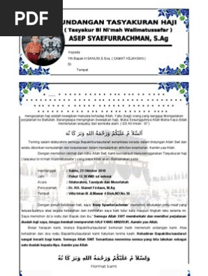 Lansung saja berikut ini contoh penulisan undangan walimatus. Setelah beberapa pencarian undangan untuk mendoakan naik haji atau undangan walimatussafar lalu setelah di download beberapa file contoh undangan selamatan naik haji tersebut kami bandingkan ternyata sangat banyak kesamaan satu dengan lainnya. Contoh uleman 2 syukuran akikah anak bahasa sunda. Artikel seputar contoh undangan walimatussafar haji doc barangkali sangat diperlukan bagi sebagian manusia. 179316230 undangan haji. Yaitu dari segi layout dan formatnya.